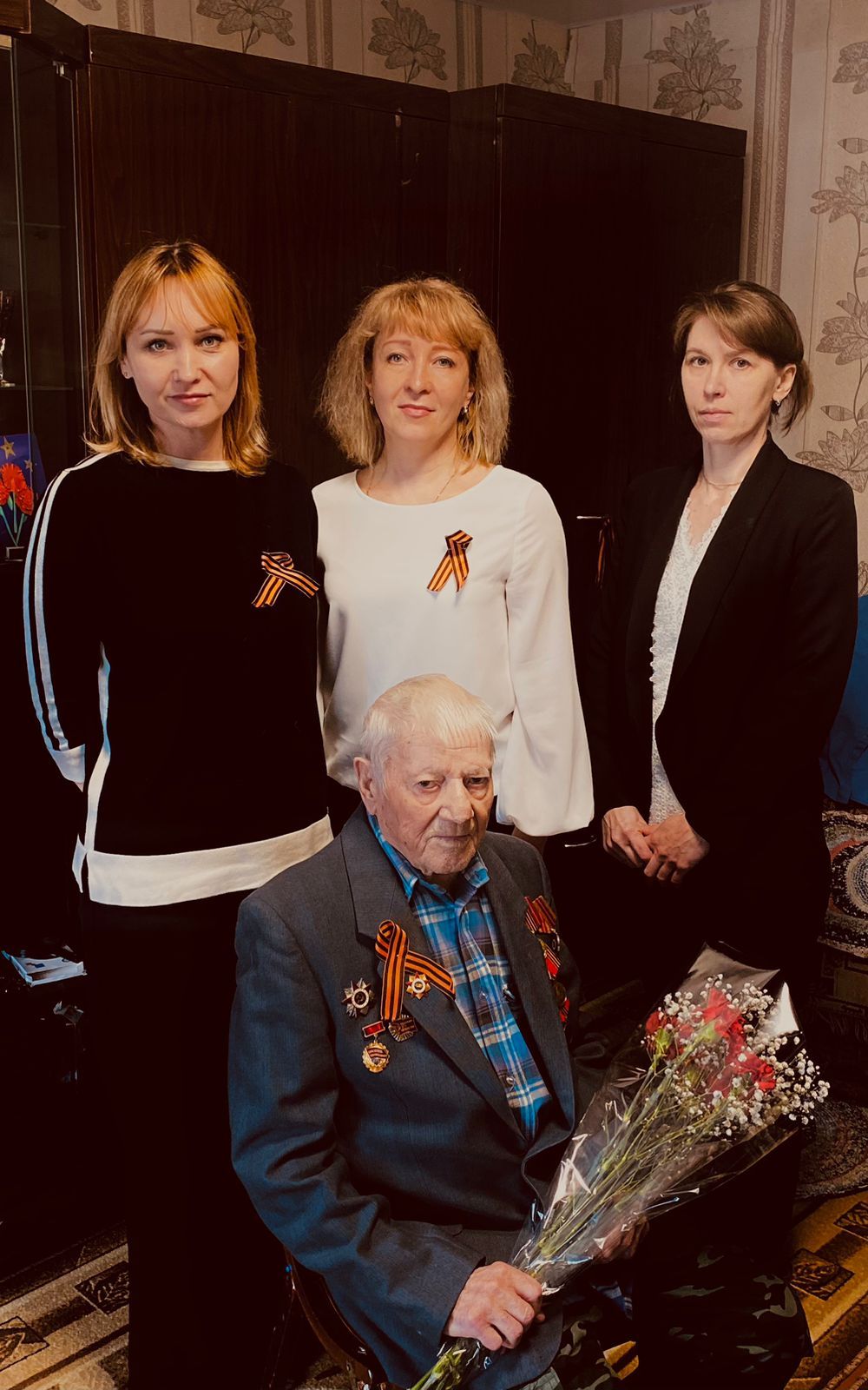 В канун празднования 80-летия Победы в Великой Отечественной войне представители коллективов Нолинского районного суда Кировской области (пгт Нема) и судебного участка № 27 Нолинского судебного района Кировской области посетили и поздравили с наступающим праздником единственного на сегодняшний день в Немском муниципальном округе ветерана Великой Отечественной войны Шумилова Ермила Ивановича. Встреча была очень трогательной и бесценной. Очень радостно, что в свои 94 года Ермил Иванович встретил гостей в хорошем настроении и бодром духе. За душевной беседой вспомнились военные годы. Ермил Иванович рассказал, как после окончания войны в течение четырех лет в составе снайперского взвода воевал в Западной Украине с националистическими бандформированиями. Вспомнил, что бандеровцы отличались особой жестокостью к русским солдатам и мирному населению. Ермил Иванович был контужен, полгода пролежал в госпитале. После демобилизации вернулся на родину, работал на лесозаготовках, затем механиком в Христофоровском лесопункте, до выхода на заслуженный отдых трудился в Немском леспромхозе водителем. Вместе с женой Анной Ильиничной Ермил Иванович воспитали троих детей. В настоящее время его 19-летний правнук Данил так же мужественно выполняет боевые задачи в зоне СВО, достойно продолжает дело своего прадеда. В этот праздник – 9 мая, в день Великой Победы хочется